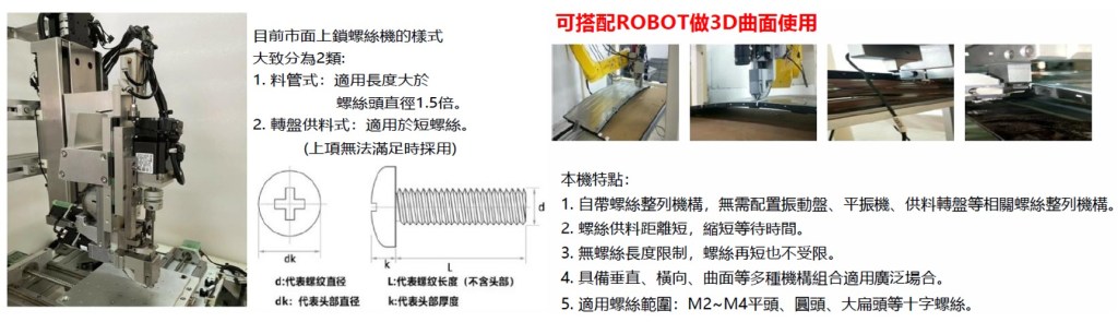 ■ 多功能性:支援各種短螺絲規格和類型的裝配需求,具有靈活適應性。